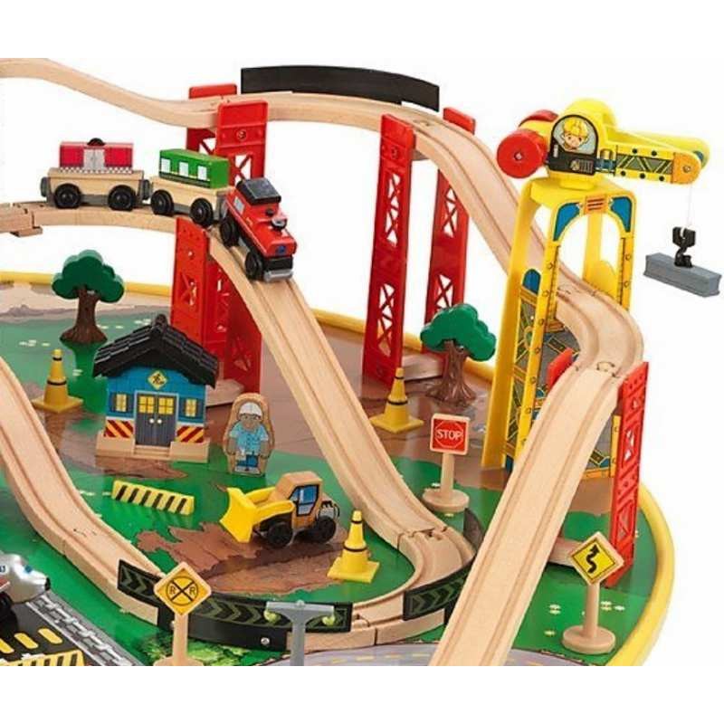 Set trenulete City Explorer KidKraft cu masuta de joaca din lemn