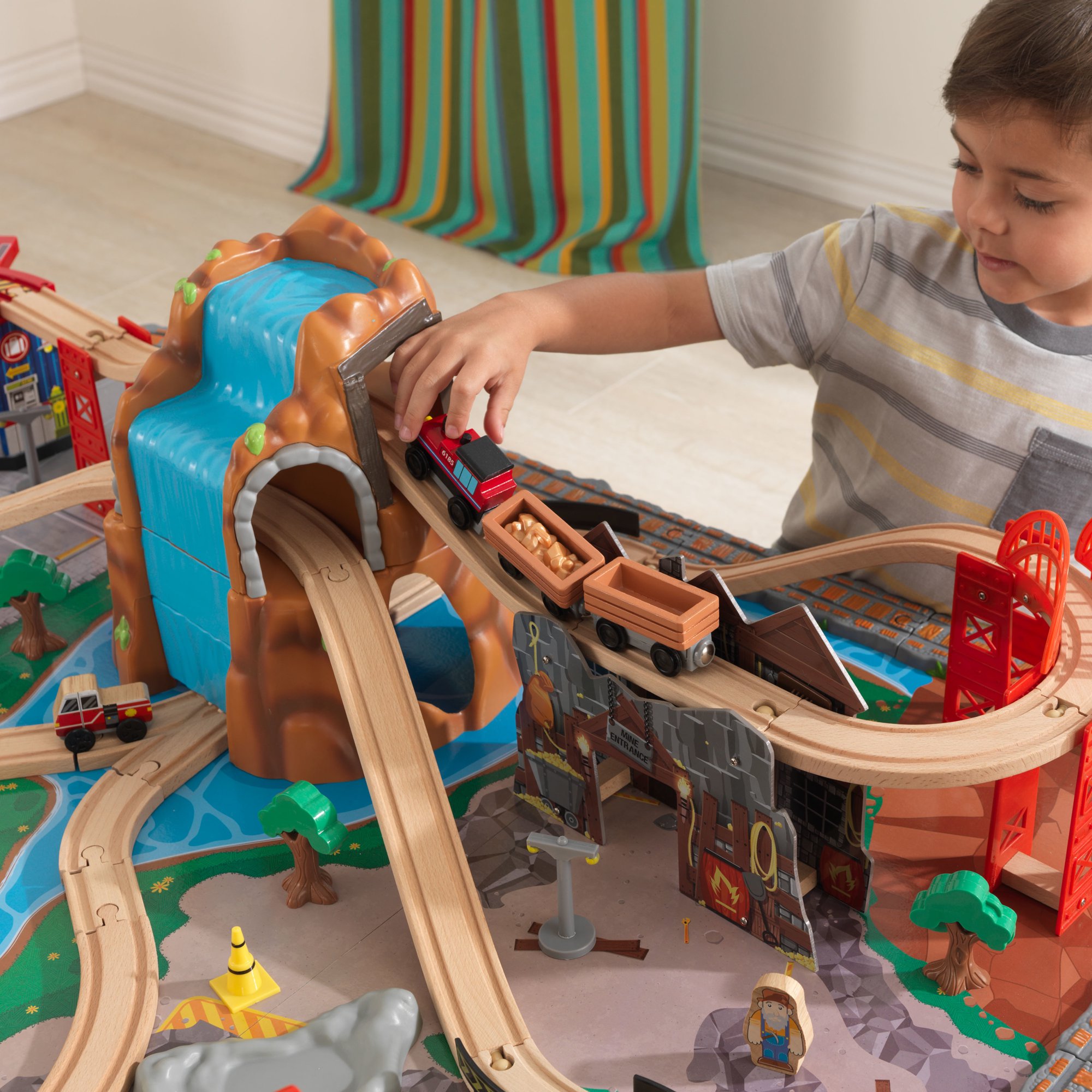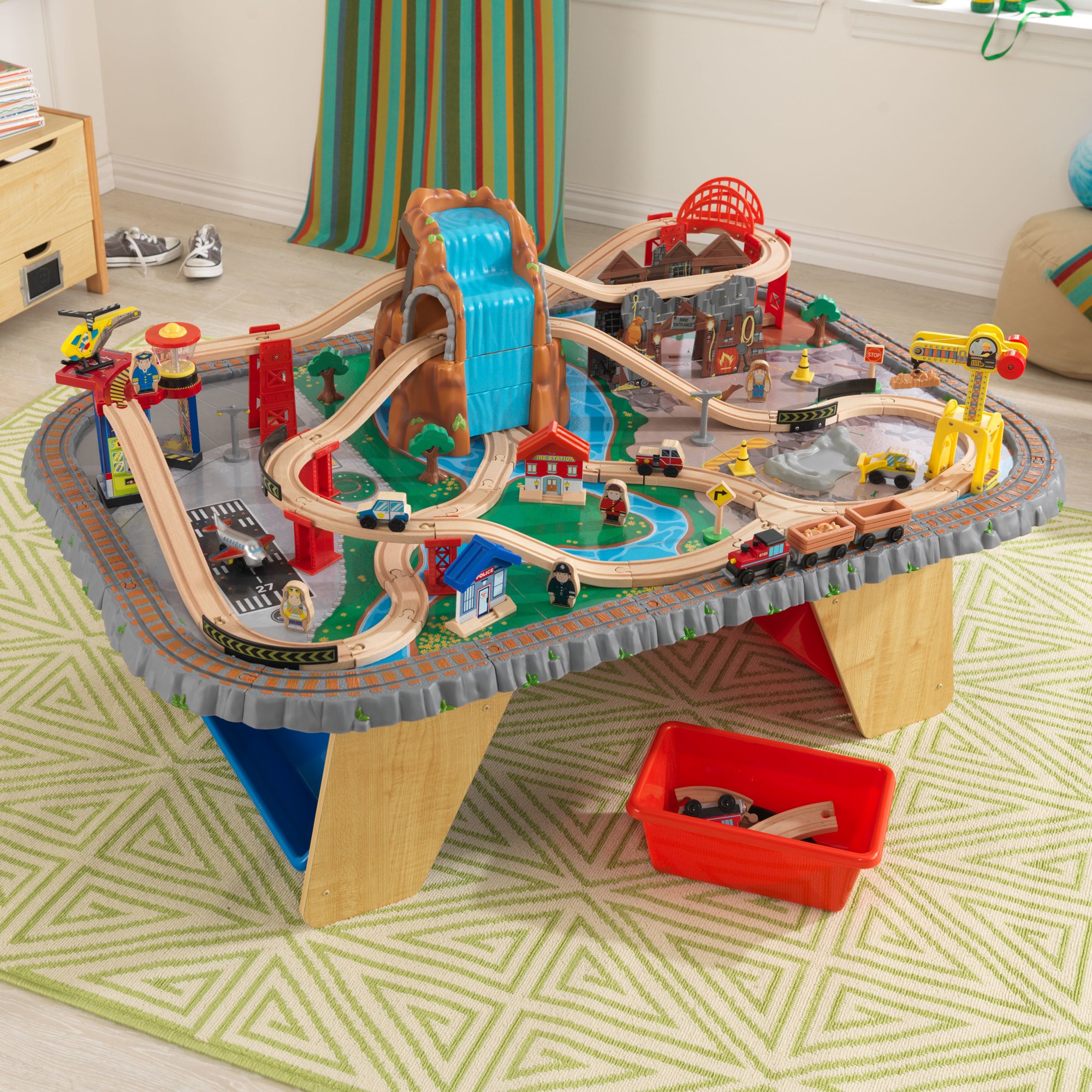 Set trenulet Waterfall Junction KidKraft cu masa de joaca din lemn