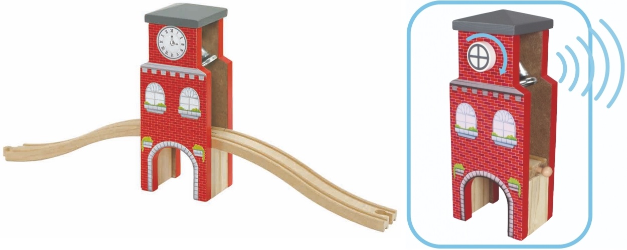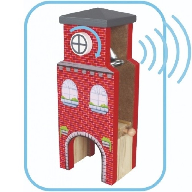 Produs: Turnul cu Ceas si clopotel care suna – Tower Bell din lemn Maxim Rail Road City Hall