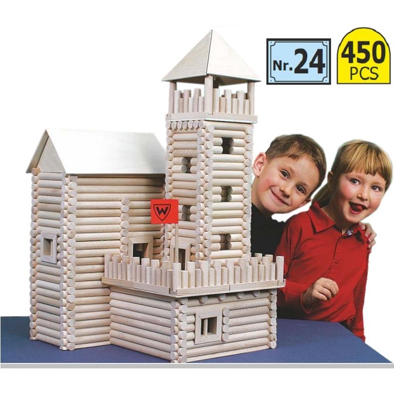 Setul contine piese din fag de 15 mm diametru, de lungimi diferite, iar prin intermediul sistemului de constructie de la capete, constructia poate fi asamblata in functie de propriile idei.