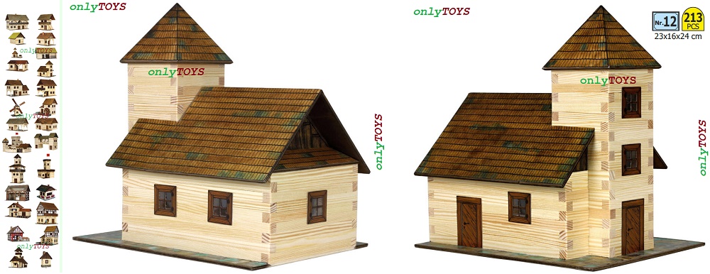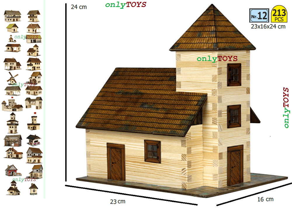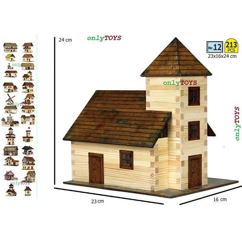 Produs: Set constructie casute traditionale din lemn Biserica (213 piese)