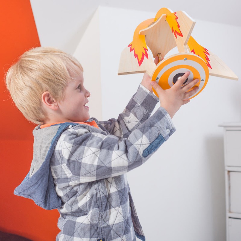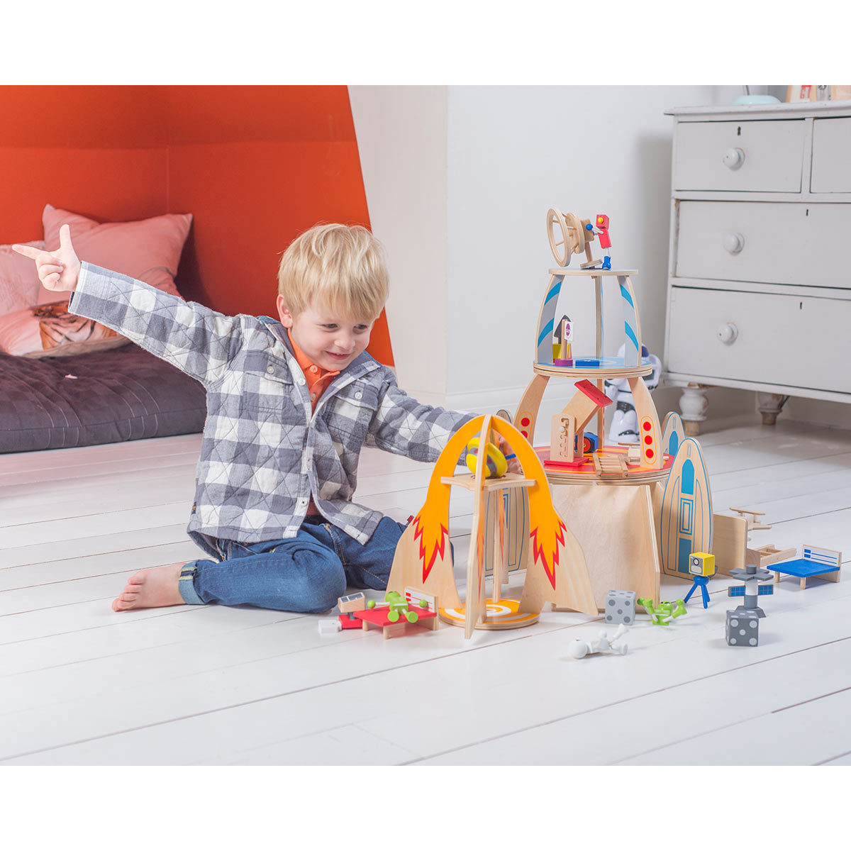 - Super Space Rocket este fabricat din lemn puternic și robust, construit pentru a dura ani în următorii ani (sau pentru multe zboruri spre lună și înapoi!)