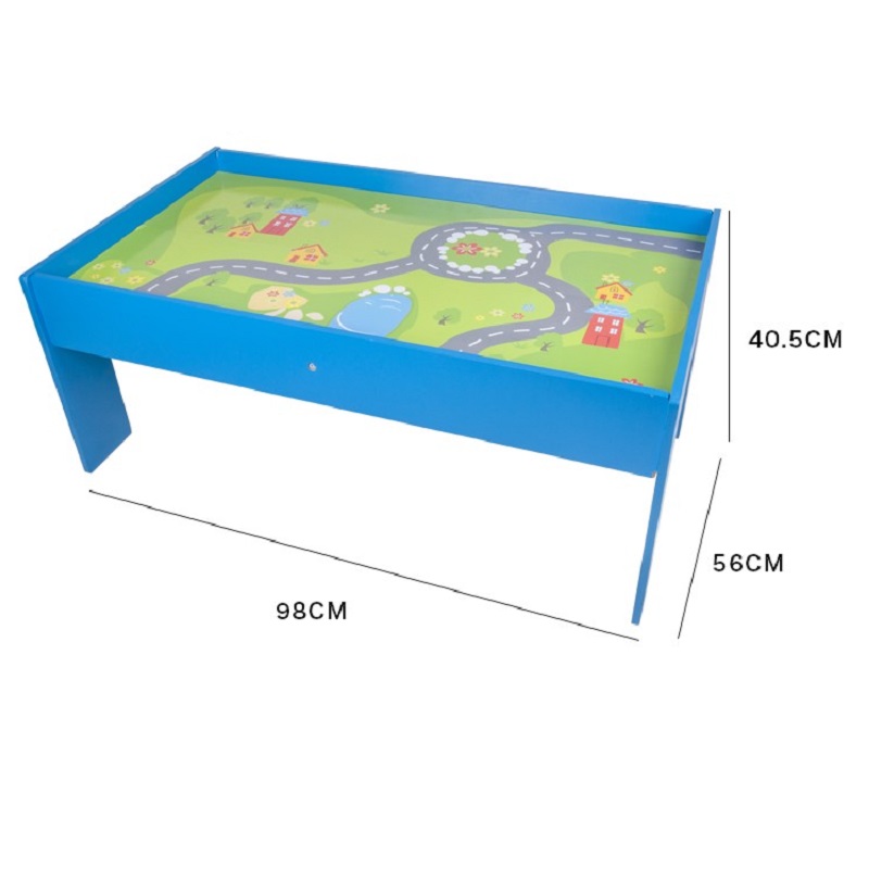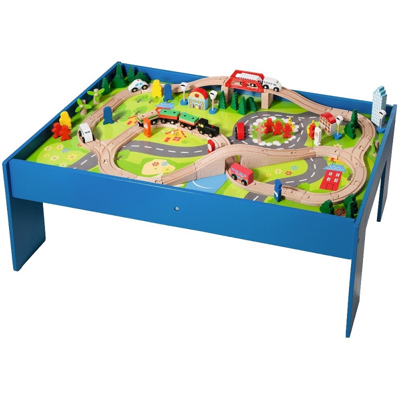 Masuta din lemn special proiectata pentru joaca cu trenulete, sine si accesorii din lemn.