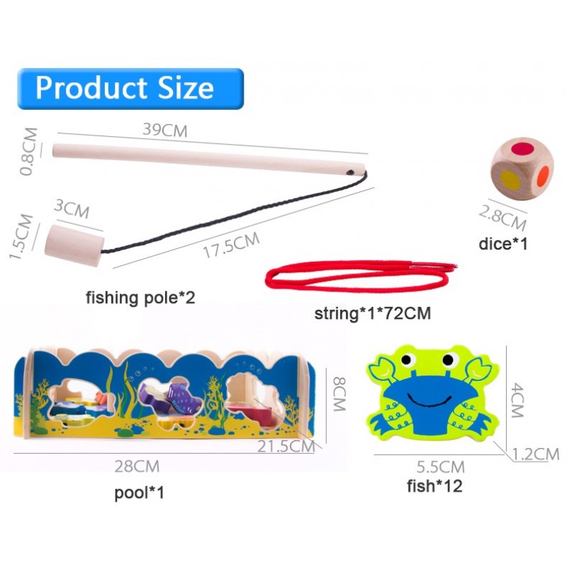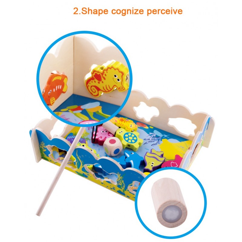Faptul că, peștișorii care pot fi pescuiti cu undițele magnetice se află în adâncime, îngreunează munca micilor pescari insa devine si super distractiv. Peștisorii de lemn sunt colorati în trei game de culori cu tonuri de galben, tonuri de rosu si tonuri de albastru.