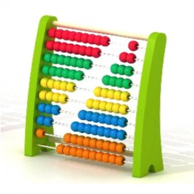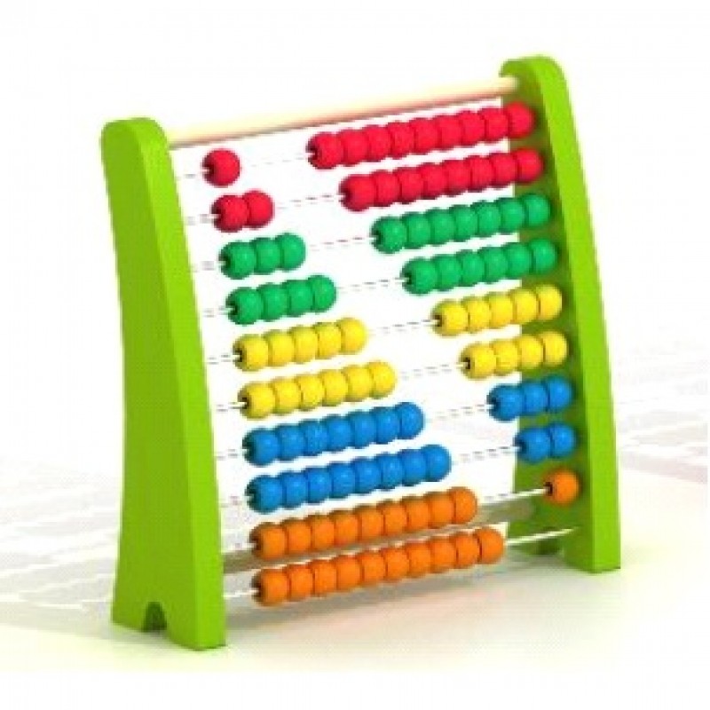 Numaratoare/ abac din lemn, cu bile colorate, pentru activitati de numarare si operatii de adunare si scadere.